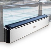 Mit der Schienenverlängerung kann die Überdachung vollständig über den Pool hinausgeschoben werden. Somit ist der Pool komplett geöffnet. Wenn aus Platzgründen eine Schienenverlängerung nicht möglich ist, können die Module auch zusammengeschoben auf dem Pool verbleiben, da die Frontwand zum Durchschwimmen schnell abnehmbar ist.