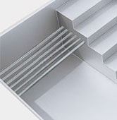 - Wählbare Treppenformen (schräge Ecke, Rechteck oder ganze Breite)