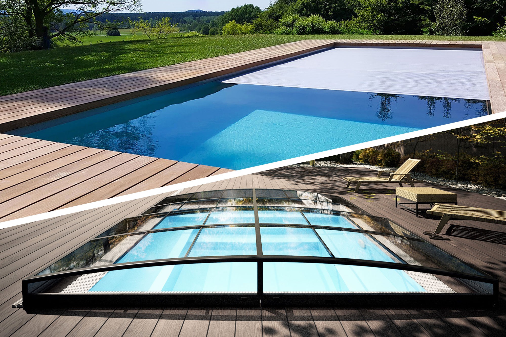Edelstahlpool Komplettset Infinity® Eternity mit Überlauf-Fertigpool und optional elektrischem Rollo / Poolabdeckung