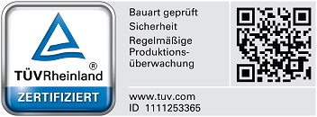 Die Details können Sie unter diesem Link einsehen oder Sie klicken auf das TÜV Rheinland-Zertifikat: