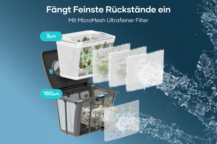 - ECO-Modus: 3 automatische Reinigungszyklen – Start sofort, anschließend alle 48 Stunden ein weiterer Zyklus