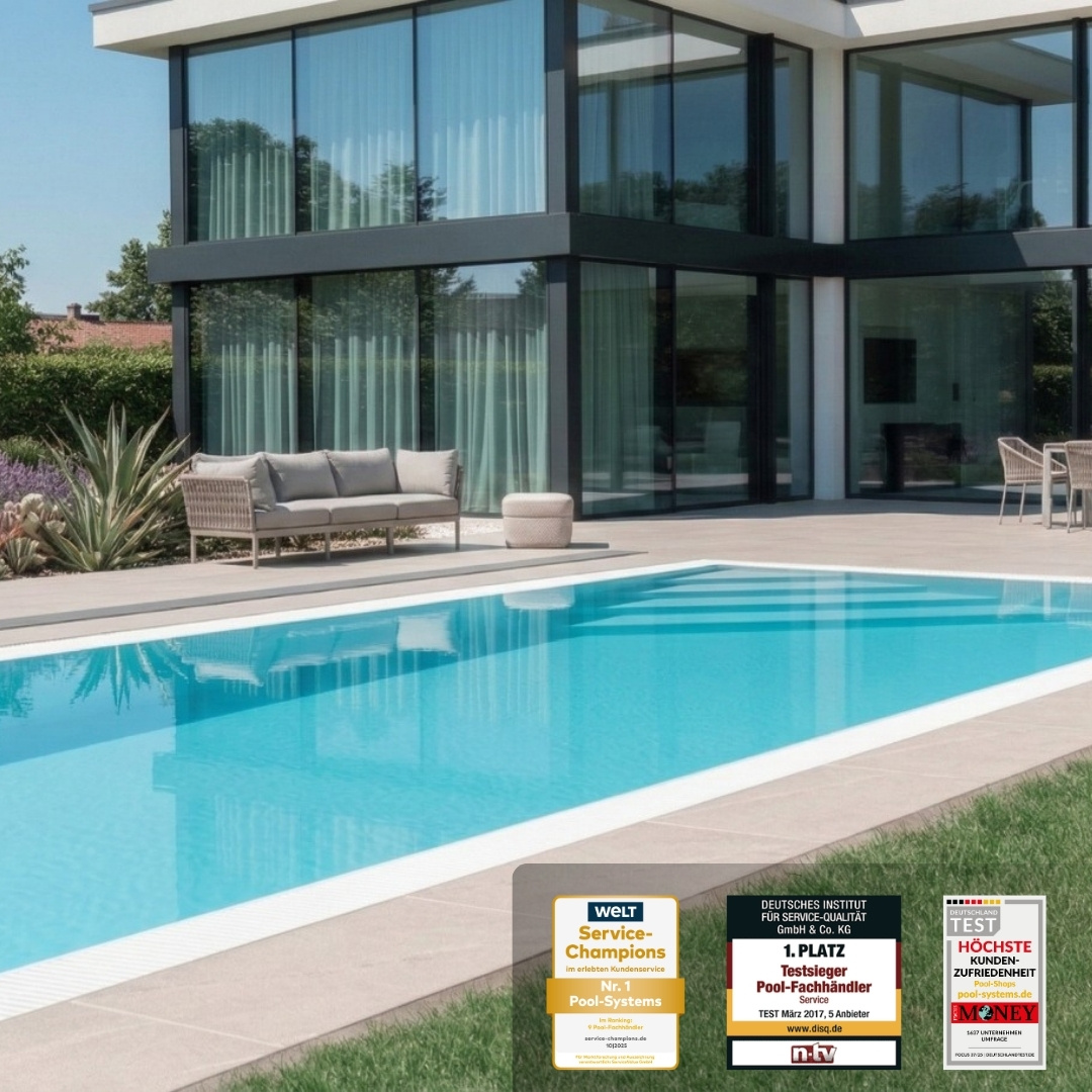 Erfahren Sie gerne auch mehr über unsere Schwimmbecken, unser Zubehör und unseren Service auf dem POOL SYSTEMS YouTube Channel. Vertrauen Sie dem mehrfachen Testsieger und Marktführer:
