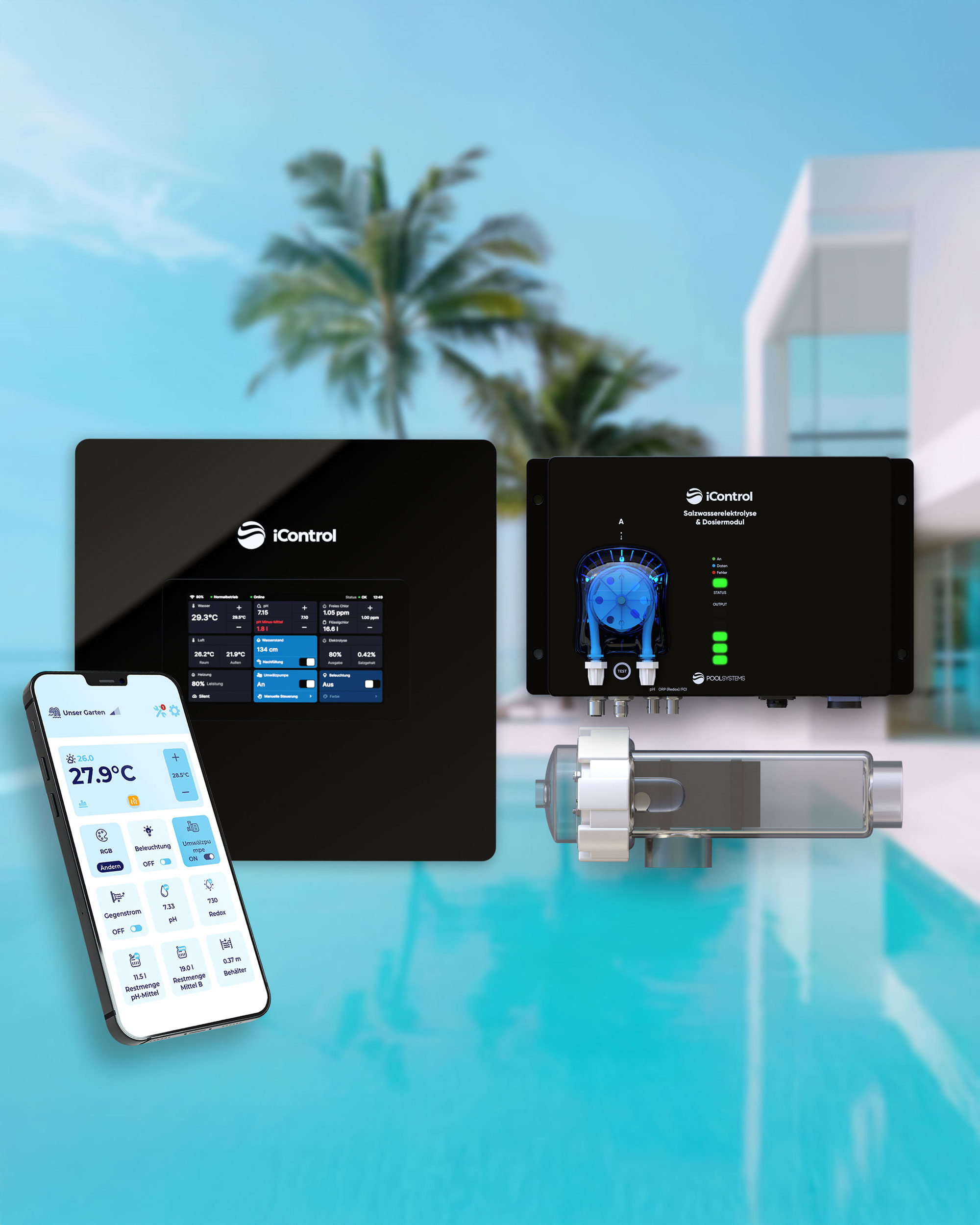 - Smarte Steuerung mit iControl von POOL-SYSTEMS - Mit iControl automatisieren Sie die komplette Poolsteuerung – von der pH-Wert-Regulierung über Temperatur- und Filtermanagement bis hin zur Fernwartung – und behalten alles bequem per App im Blick.